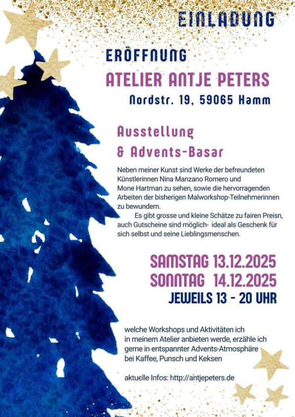 Für weitere Infos melden Sie sich telefonisch oder per WhatsApp unter 0151 62876039, oder per Mail an kontakt@antjepeters.de .